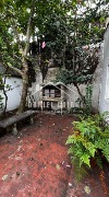Posee patio con árboles ,plantas y parrilla, cochera techada para un auto.